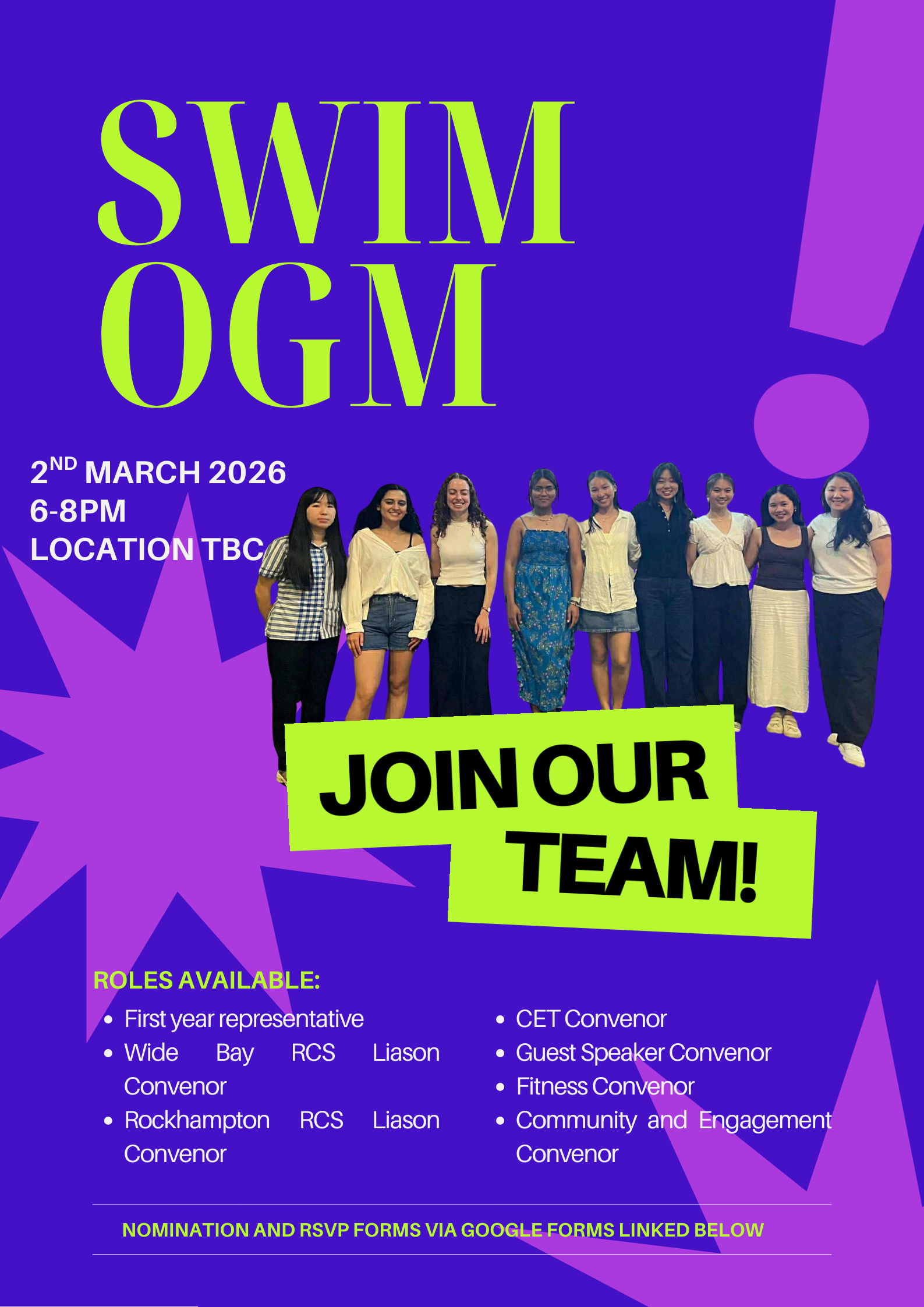Come along to the SWIM OGM and get involved in shaping an amazing year ahead! This is your chance to meet the team, learn more about SWIM, and nominate yourself for an exciting committee role.